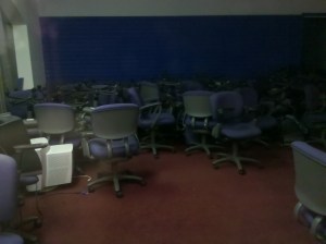 First there is the chair graveyard. Not sure what this store used to be but it’s now the dumping ground for old blue office chairs. It’s actually kind of eerie to look in and see all these chairs piled up on each other. On the other hand, it might be fun to break in and have chair races up and down the halls of the mall!