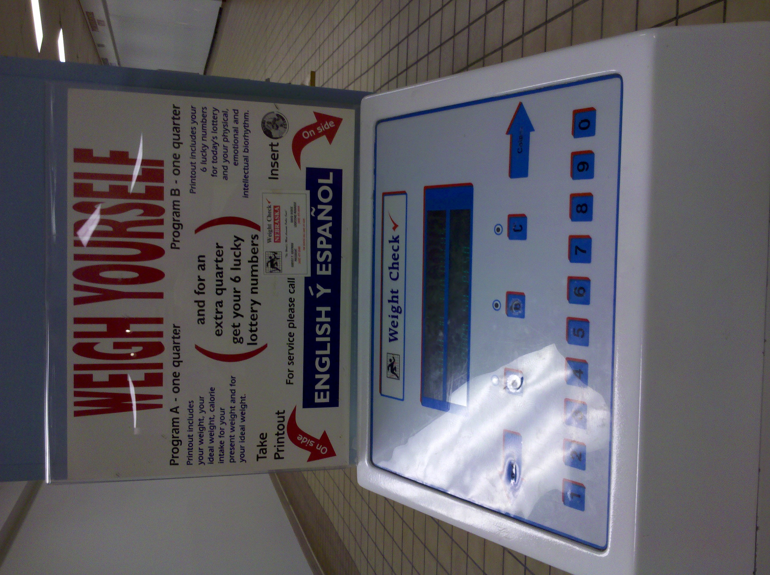 This one is for the person that wants everything. It not only gives you a report of your weight, your ideal weight, and calorie in take, but it also gives you your 6 lucky lottery numbers AND speaks Spanish. You guys, this is frickin’ sweet! All that for only a quarter! You can’t beat it!