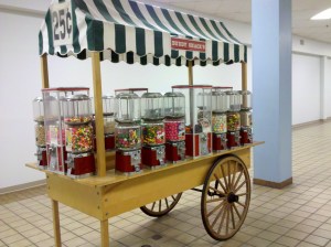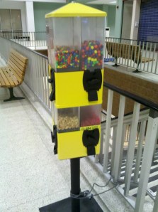 Oddly enough, there is no shortage of places to buy candy around here. There is the GIANT gumball machine, the candy cart and then the regular old collection of candy machines.