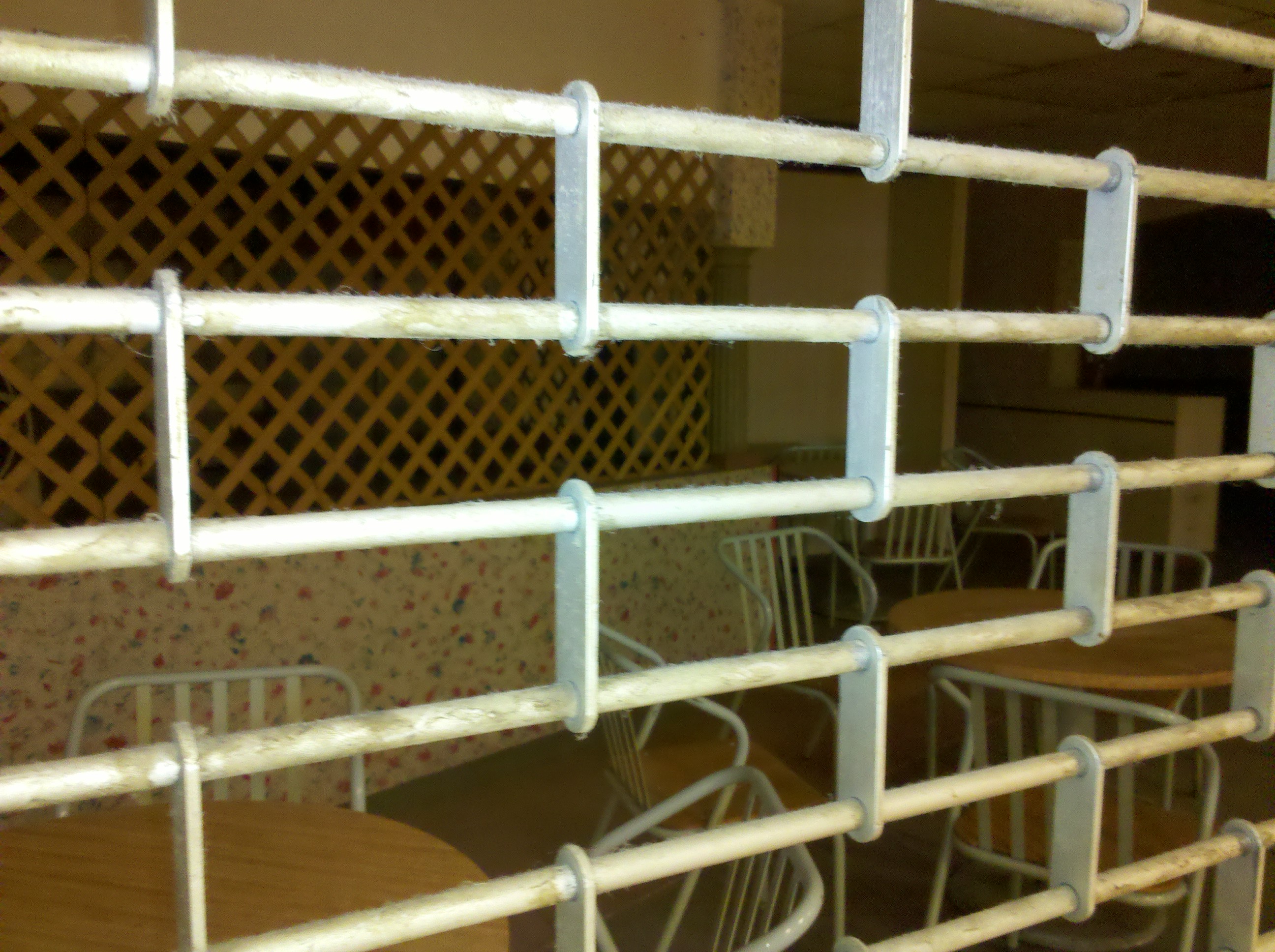 Anywho. This one really looks like everyone in it just vanished into a puff of smoke. All the tables/chairs are still set up and the counter looks ready to serve (aside from the inches of dust on it). I think the trellis is a nice touch too.