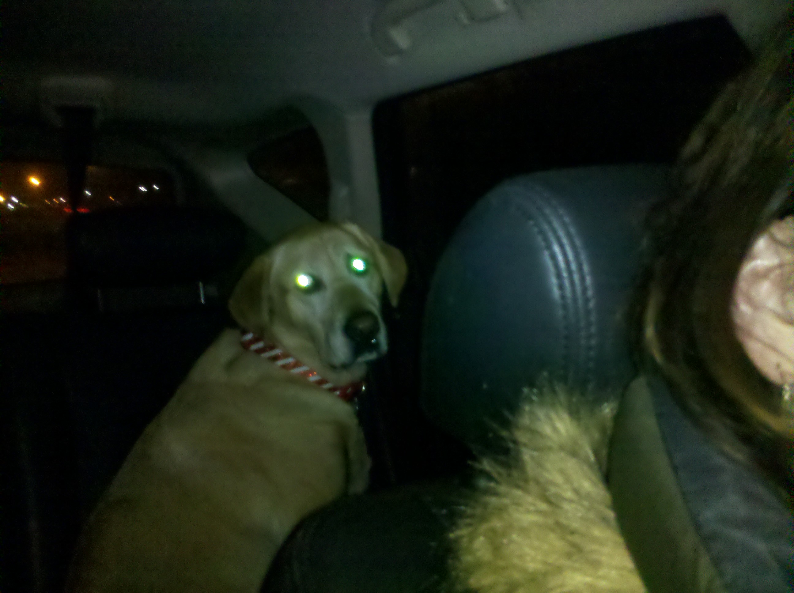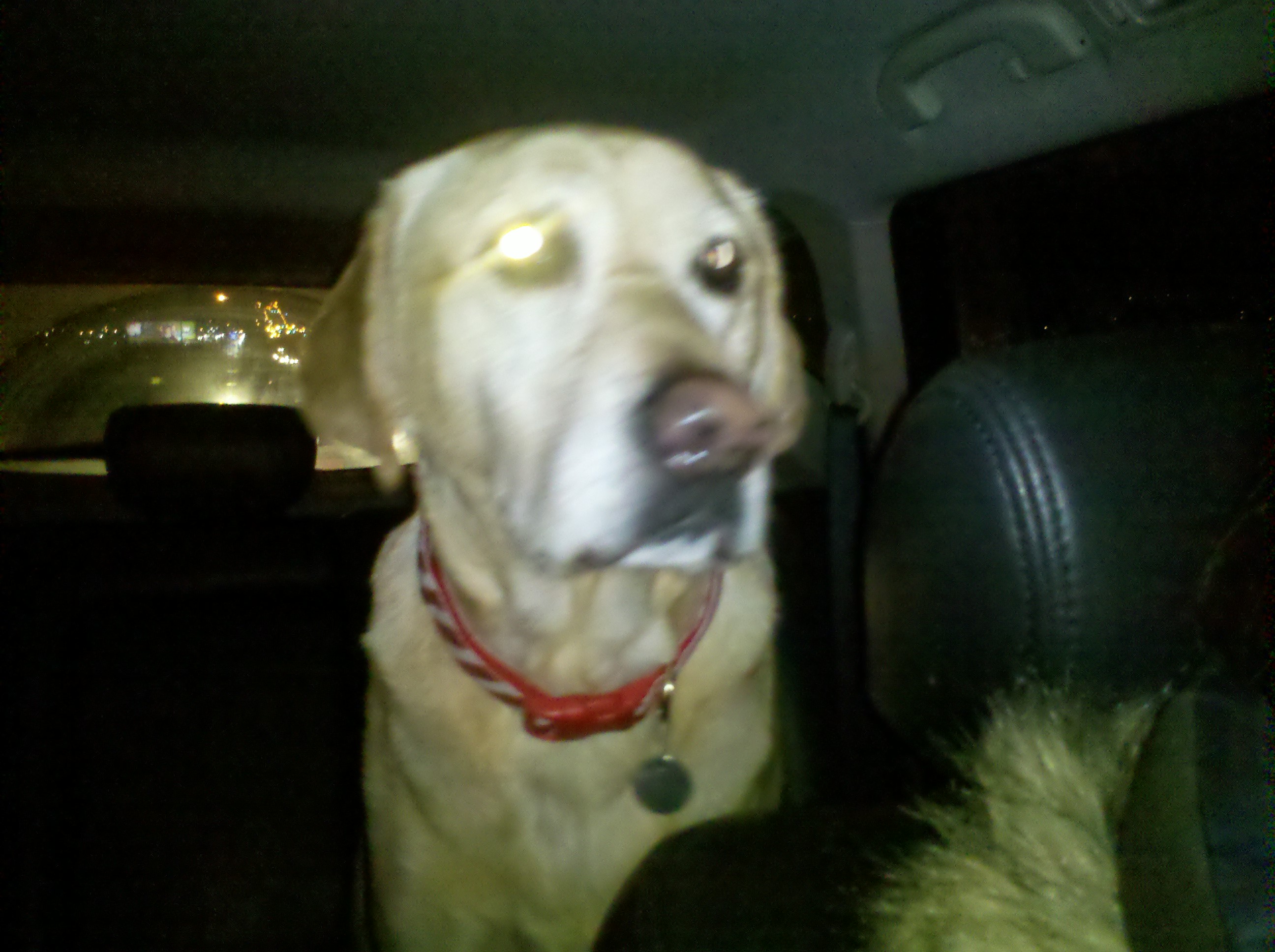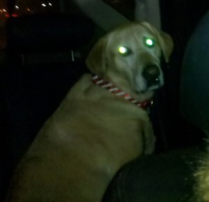 He started whining and panting and trying to jump in the front seat! Then he’d jump in the back, then in the front. If he were little it wouldn’t be a big deal but he’s 95 lbs of muscle so it’s kind of distracting.