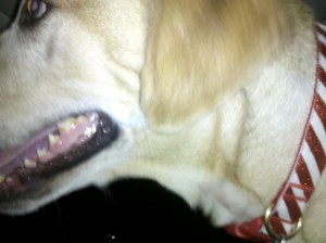 We got inside at the same time as another guy who had 2 dogs with him: a yellow lab and a Great Dane. And boy was this Dane great. He was frickin’ huge! Probably out weighed me and Samson combined. His name was Zeus which seemed fitting. But Samson is an equal opportunity dog and he did not care that Zeus could eat him for breakfast and still have room for his other lab friend. Samson went ahead and barked and barked and barked at him. Zeus actually looked at him as if to say, “Wow, I admire your cojones brother. You’re a badass.”
