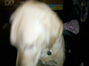 Most of the drive was pretty tame. Me listening to the radio and singing at the top of my lungs to sappy Christmas songs while he sat in the back and looked out the window. But, don’t be fooled. Samson knows the route. I take Harrison to 144th and then head over to Oakview Mall. As soon as we approached L St. he started whining and I could hear the tail thumping. Then I got across L St. and got in to the right hand turn lane for Oakview Dr. and all hell broke loose.
