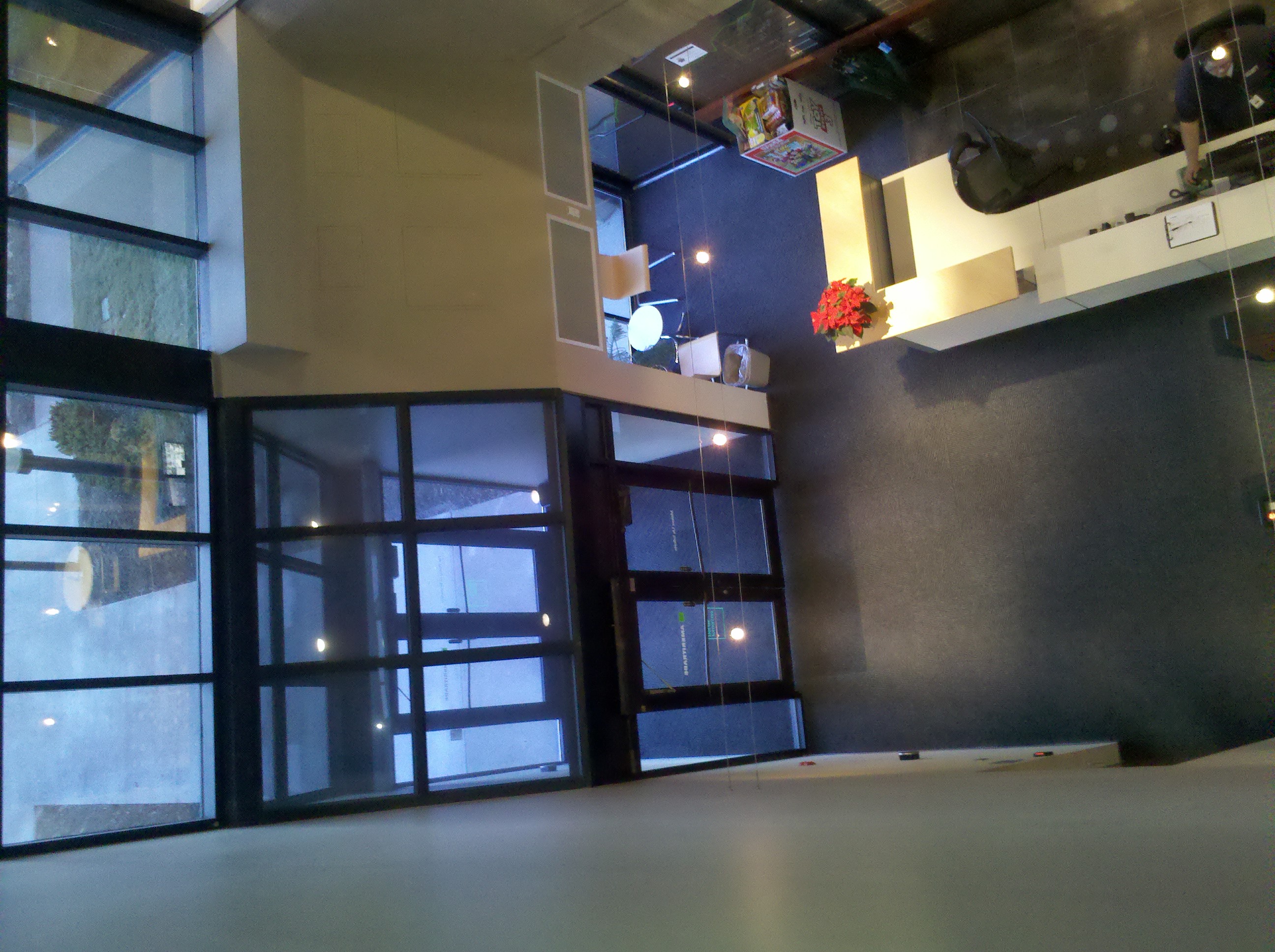 Remember how last week I talked about there being absolutely NO holiday decorations in the mall whatsoever? Well this week there was an inkling of Christmas that appeared. The company had their holiday luncheon on Wednesday so the decorations were dusted off. They consisted of red tablecloths, poinsettia plants, a big wreath and a holiday bough on the wall. It wasn’t a lot but it was enough to lift our spirits just a bit. I just hope they don’t hang up mistletoe though. Don’t want to give Scooter any opportunities…