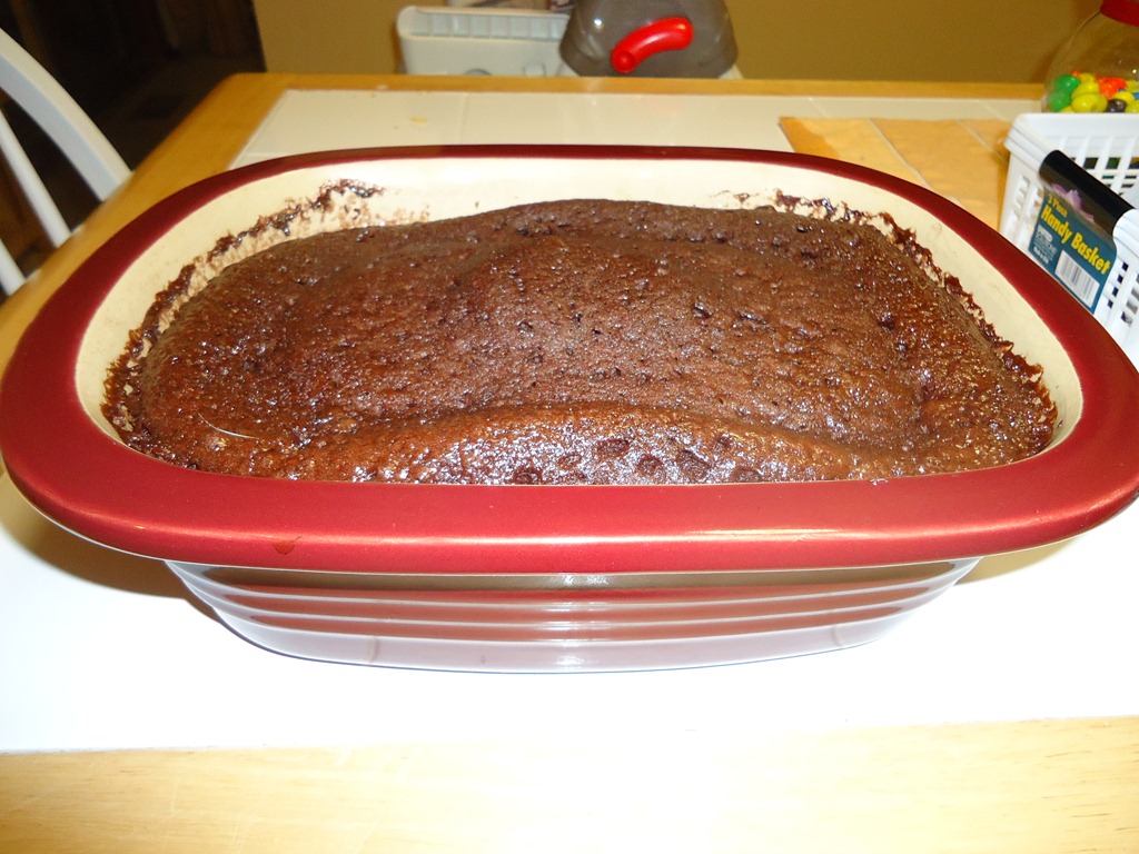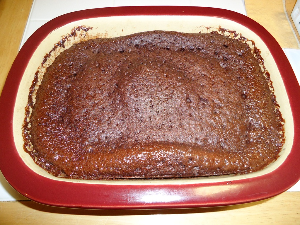 Looks like a normal cake huh? Only the kicker is that the frosting has sunk down to the bottom and basically frosted itself! So it’s like a chocolate upside down cake or something.