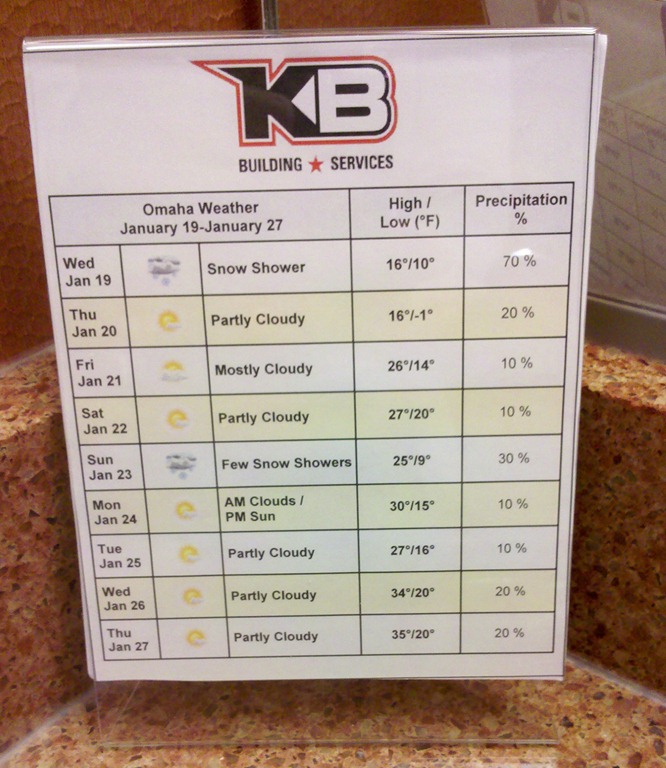 Yes, that’s right – a weather forecast for the week and fresh flowers! Well shiver me timbers, what a nice way to brighten up my hand washing experience! I could glance one way and see whether I should add on a thick sweater when getting dressed the next day or look the other way to escape into a sea of Springtime.