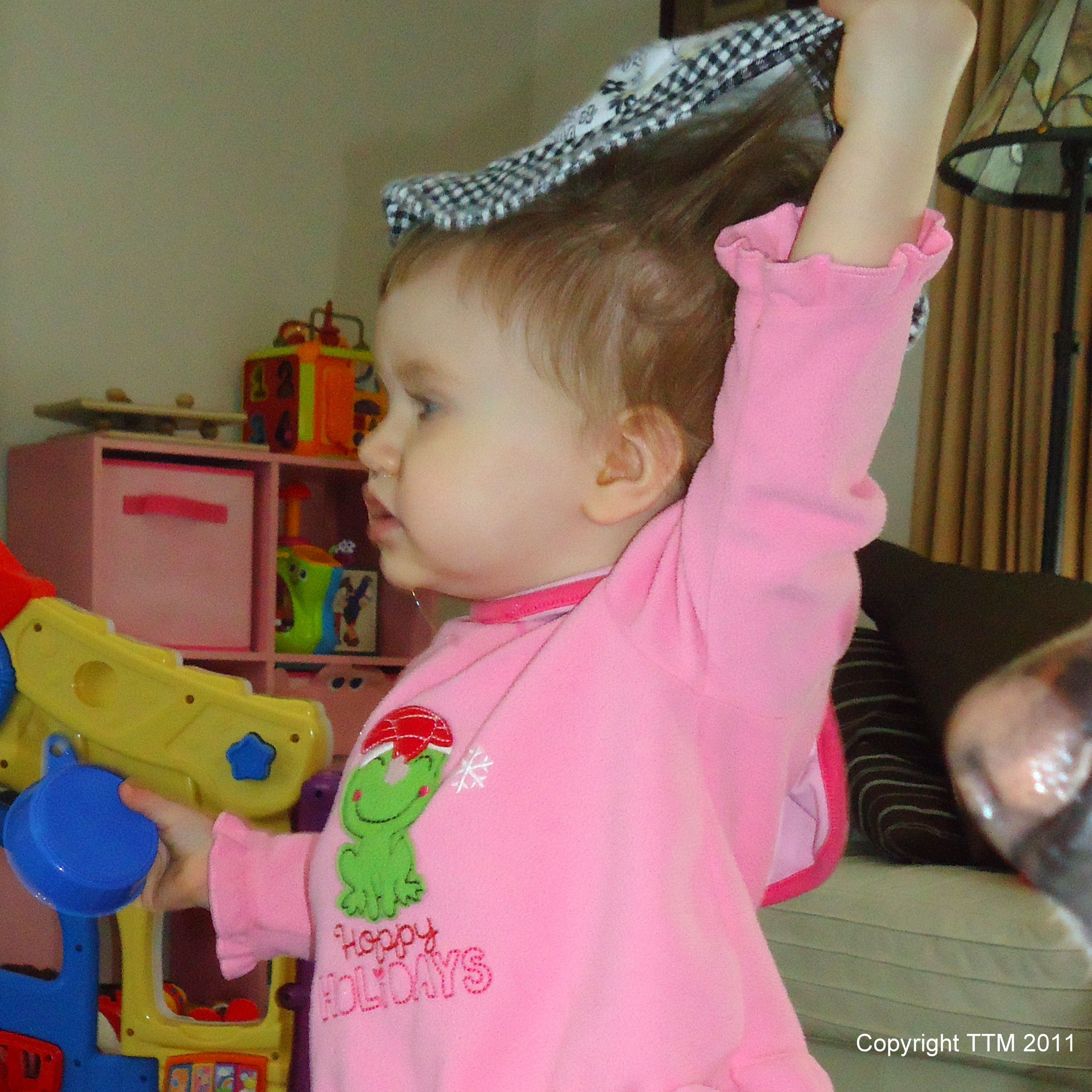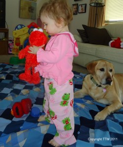 Munchkin has been talking for a while now. She started out like any other baby saying words like, “Mama”, “Dada”, “Baby” and “Dude”. Oh right, other babies don’t say ‘dude’. Well she did because that’s my nickname for Samson. She picked up on that right away! I tell ya, it’s funny to hear a one year old say “Dude!”