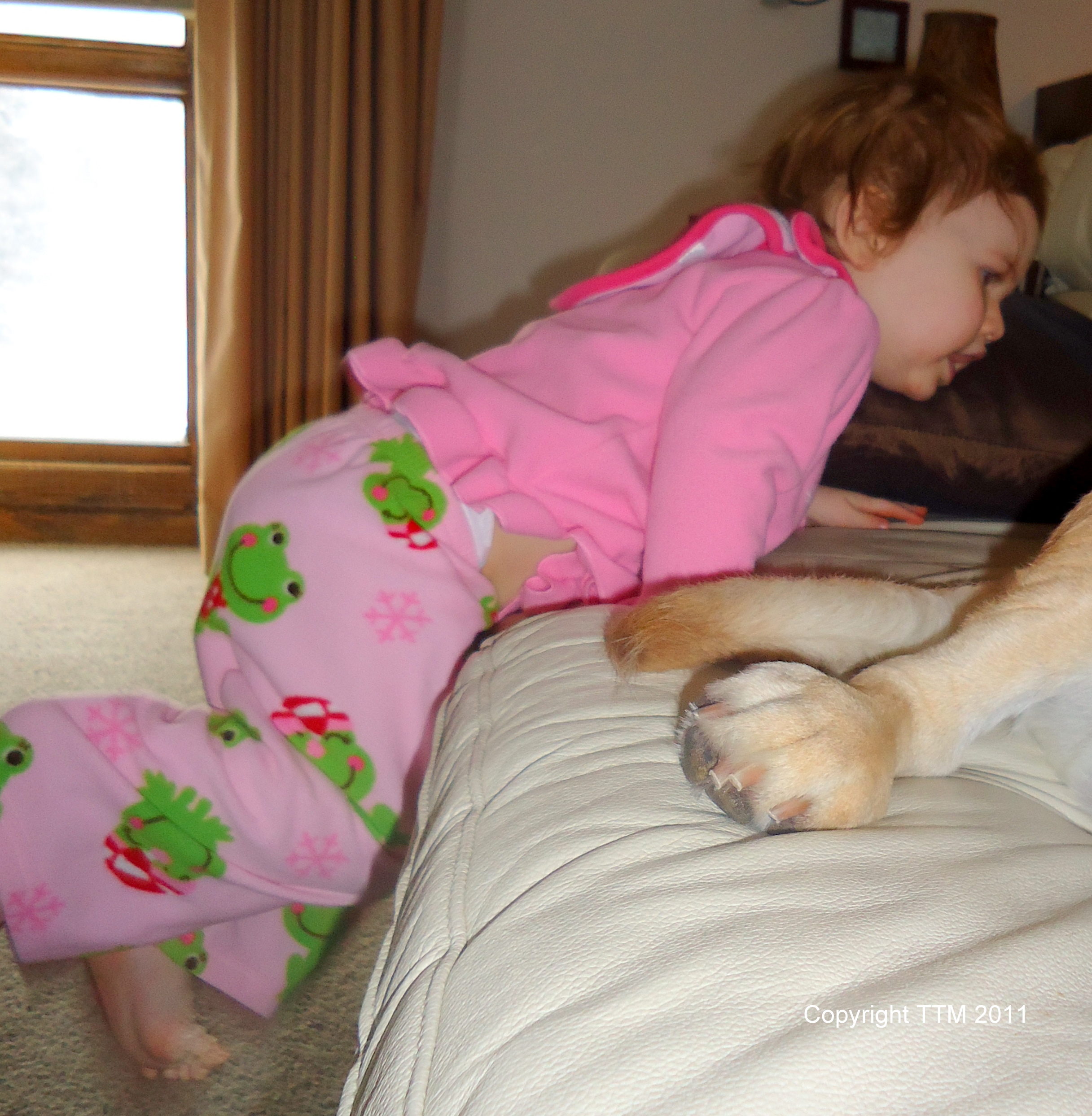 She knows one word in Russian – “Samson” (Se-am-sun). She just started referring to him by his full name the other day only she thinks his full name is Samson Dude. Makes it sound like he’s the John Wayne of the dog world.