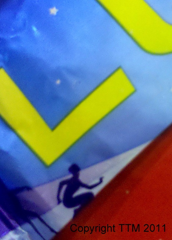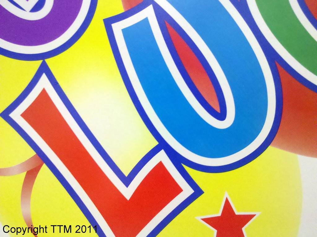One of my co-workers had his last day at work and someone brought in a “good luck” banner. I liked the colors in it and this close crop made it really interesting.