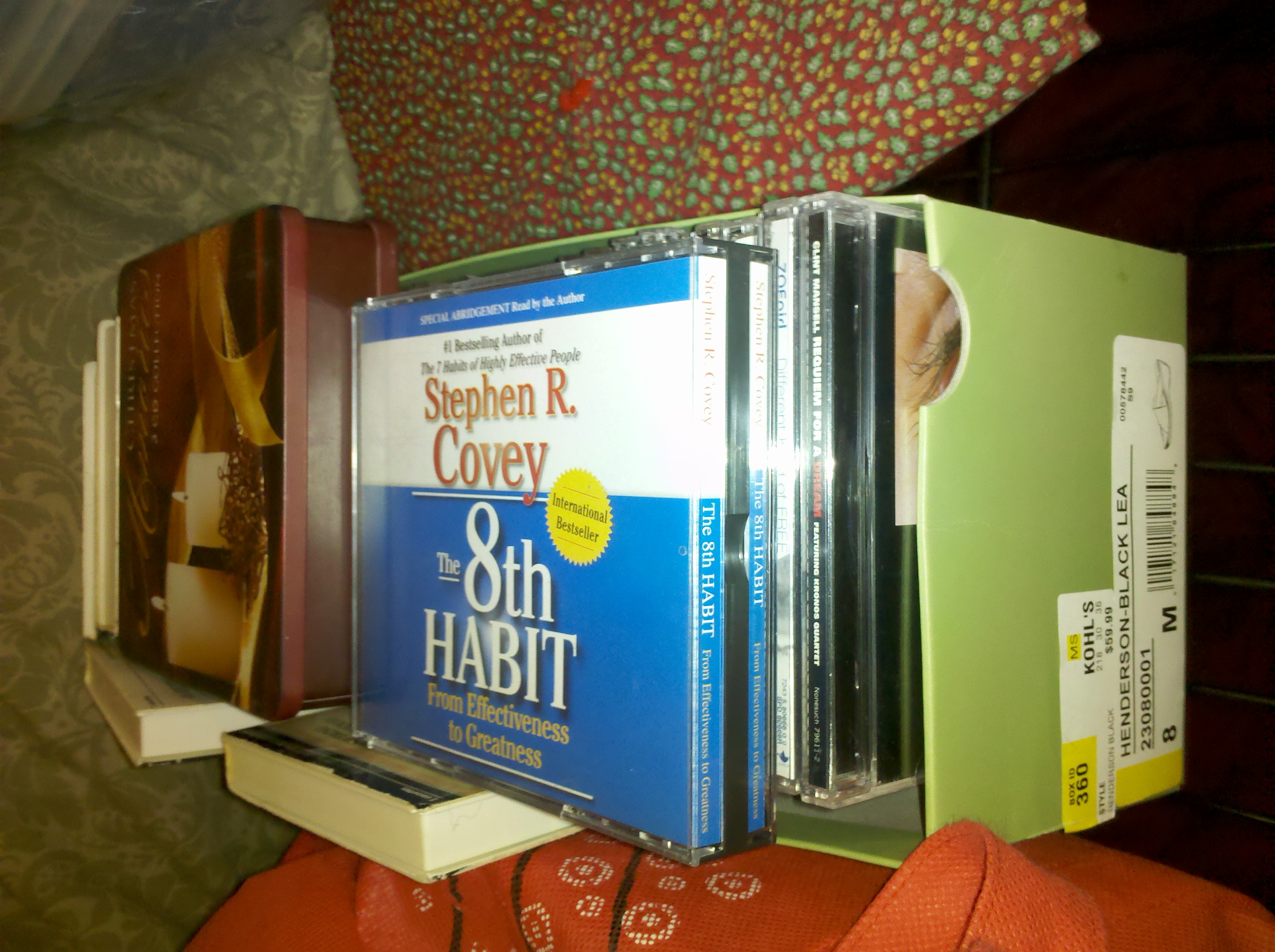 From there I tackled the CDs. We have one whole bookcase full of CDs. We also have one full of DVDs but I culled through those last fall so I didn’t spend any time there. Some of the CDs were duplicates, some were just old or ones we didn’t want anymore. I put all those in a shoebox and plan to take them to Half Price Books or CD Warehouse and sell them. I don’t think I’ll get all that much money but hey, a couple bucks is better than nothing!