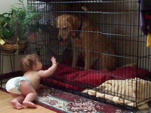 Ok, so he only has his own room because his kennel is so massive, it practically takes up a whole room. When If he gets to the point that he can be trusted without a kennel and/or we have another child, he will lose his prime real estate. But for now, we let him live under the illusion that he’s high enough in the pack to earn a room of his own.