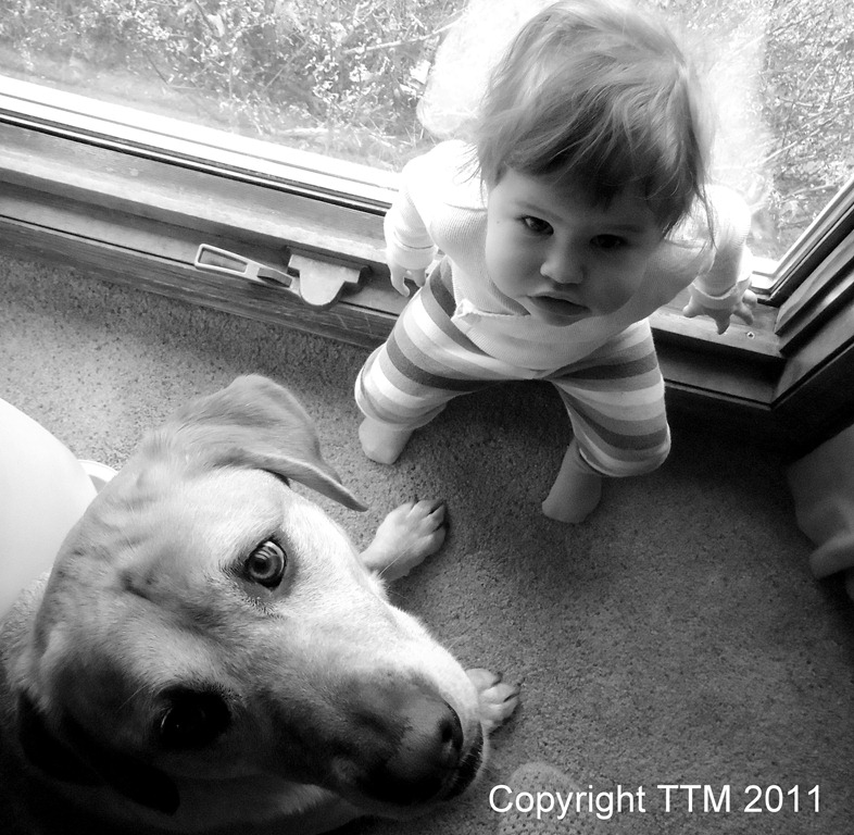 Actually, I’m not really sure that there is an emotion to go with this one (surprise seems to be a reach), I just thought it was a really cool pic. Samson was looking out the window and Munchkin was sitting on the ledge saying “chair”! I stood over them, made a loud audible gasp and this is the response I got.