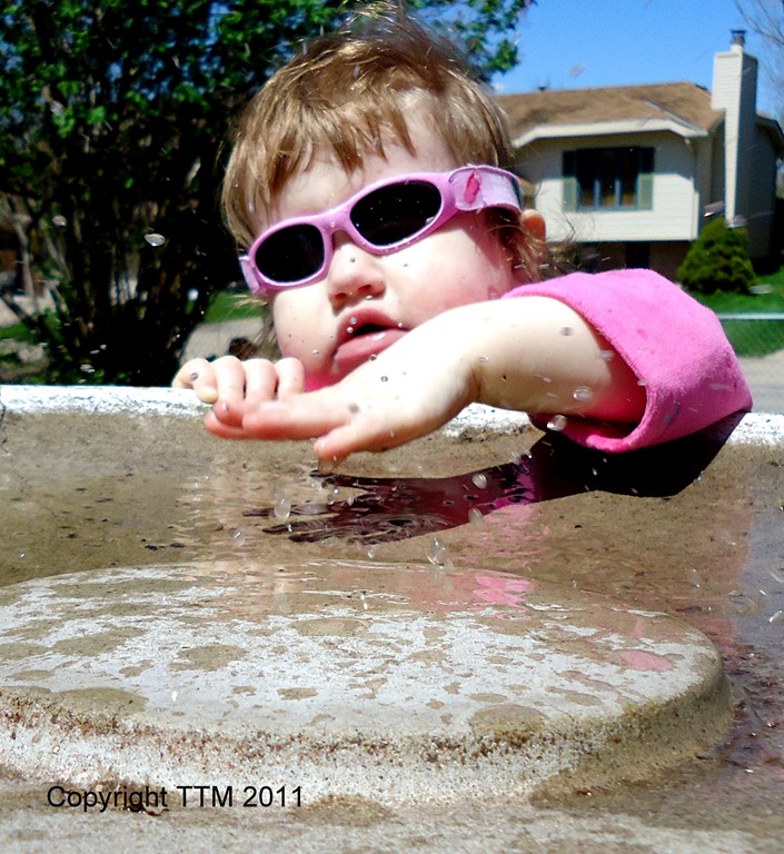 Splashing in the birdbath (don’t you just love her little sunglasses?)