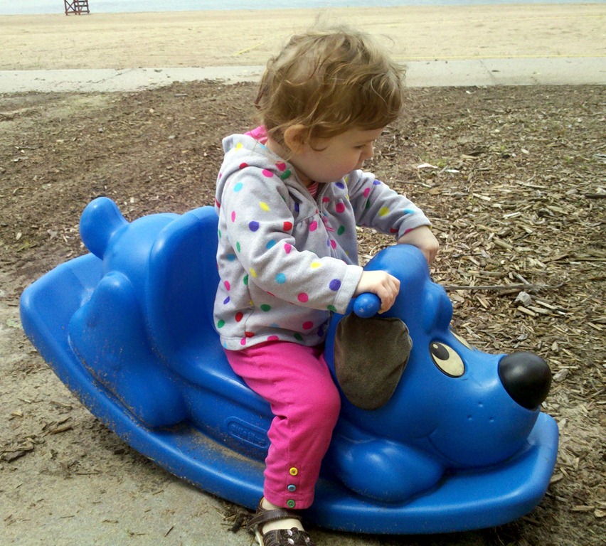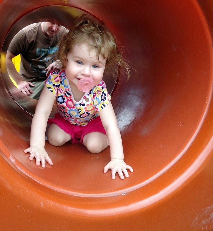 Yes I know she’s facing the wrong way but she’s still riding it without any help. She had a blast too. I have to make a conscious effort not to hover too close to her when we’re out at the park. I’m trying to remember to give her some independence and try things on her own, without help from me. I’m still close enough to catch her if she falls or make sure she’s doesn’t get hurt, but far enough that she is free to explore on her own. I can’t believe how grown up she’s getting! She turned 20 months today! AH!
