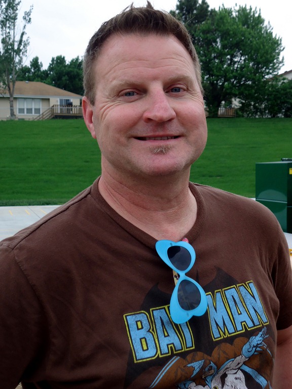 Any guy who can do pull-ups is man enough to wear blue butterfly sunglasses. And hey, they actually match his Batman shirt!