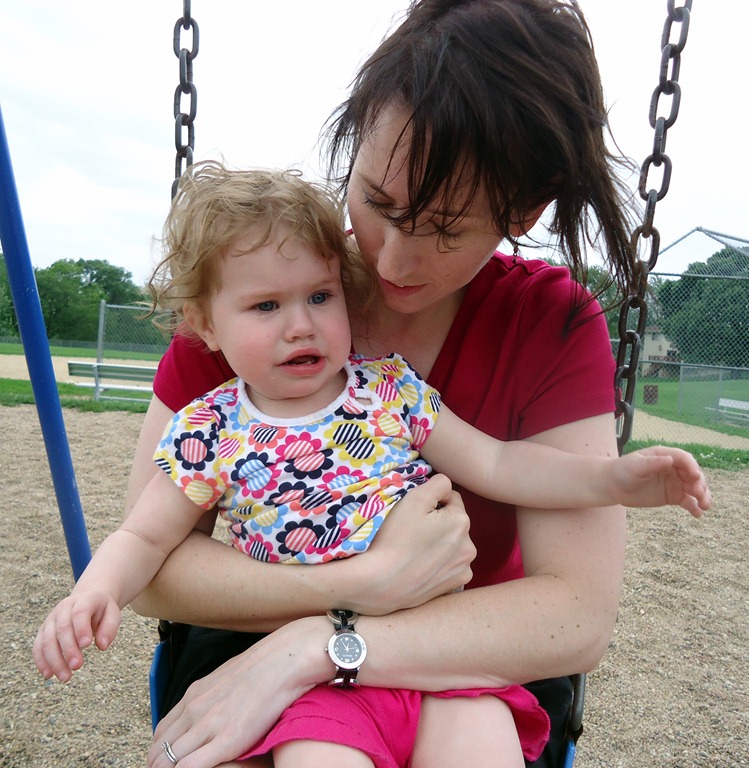 She has never been a fan of the swings but I was able to get her to sit on my lap today. She didn’t last long and she wasn’t happy about it, but it was a baby step.