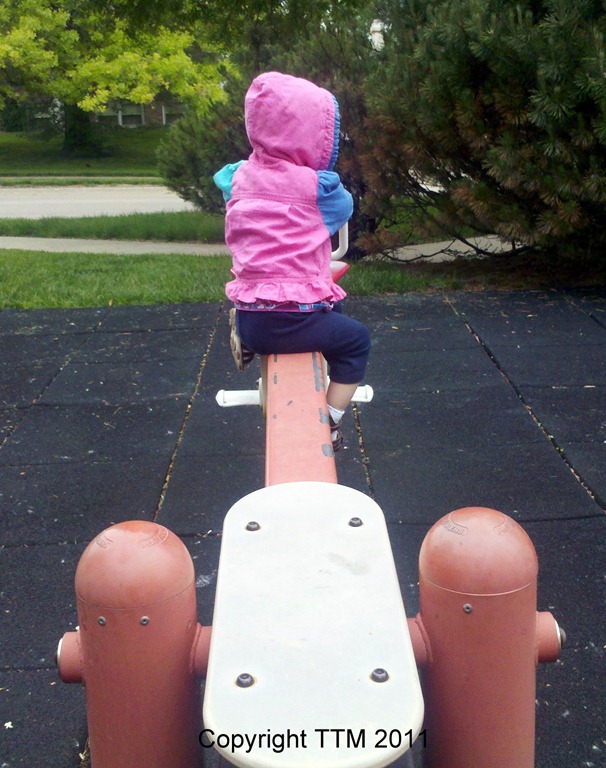Friday night we went to the park and she rode the teetor totter all by herself.