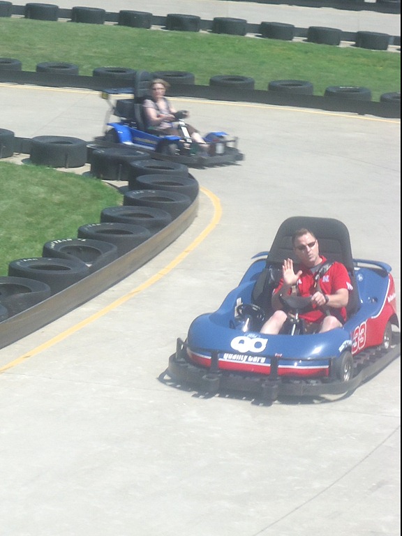 After finishing that race, some of the group decided to try the Crazy Cars ( I think that’s what they’re called anyway ). Basically the cars drive around on a metal surface so they slip and slide all over.