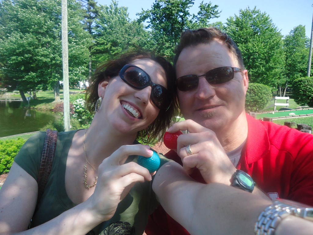 As we all know, I have a competitive streak. Once when playing mini-golf at the Olympic facility in Sydney, Australia I got so mad at a hole that I whacked my club against a tree and bent it. Oops. This is probably why I don’t play real golf. It would be too expensive for me. So with this game, I kept telling myself that this would just be a friendly game of putt-putt. No big deal. Just have fun. But let’s face it – that’s not my nature. I kept meticulous scores and it was a very close game. The difference between winner and loser was 1 point (yes I had CJ verify the math). I won’t say who won but I will say my club was solidly in tact when we left.
