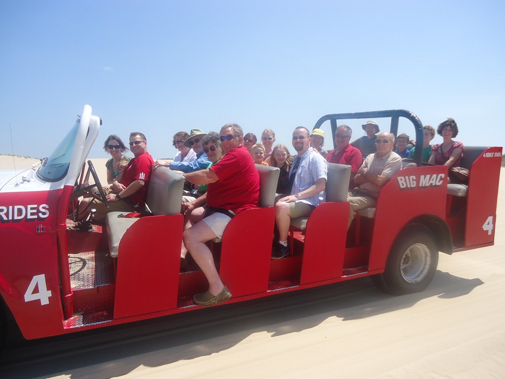 We got to Mac Wood’s Dune Rides and saw a line up of “Big Mac” trucks waiting to take people out. Apparently this is a big thing to do!