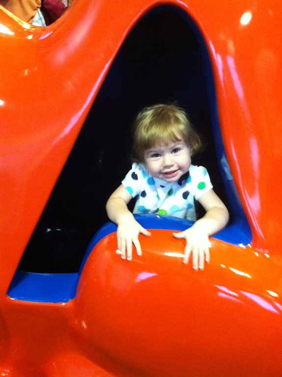 Here she is playing in the giant camel tunnel at the Omaha Children’s Museum.
