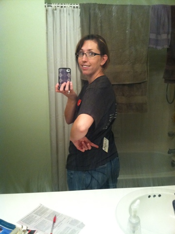 After dinner, Isabella and I made a trip to Target. We were there for about 45 minutes. Got home, put her to bed and made a trip to the bathroom only to realize I had been wearing a name tag on my back that Isabella put there at dinner.