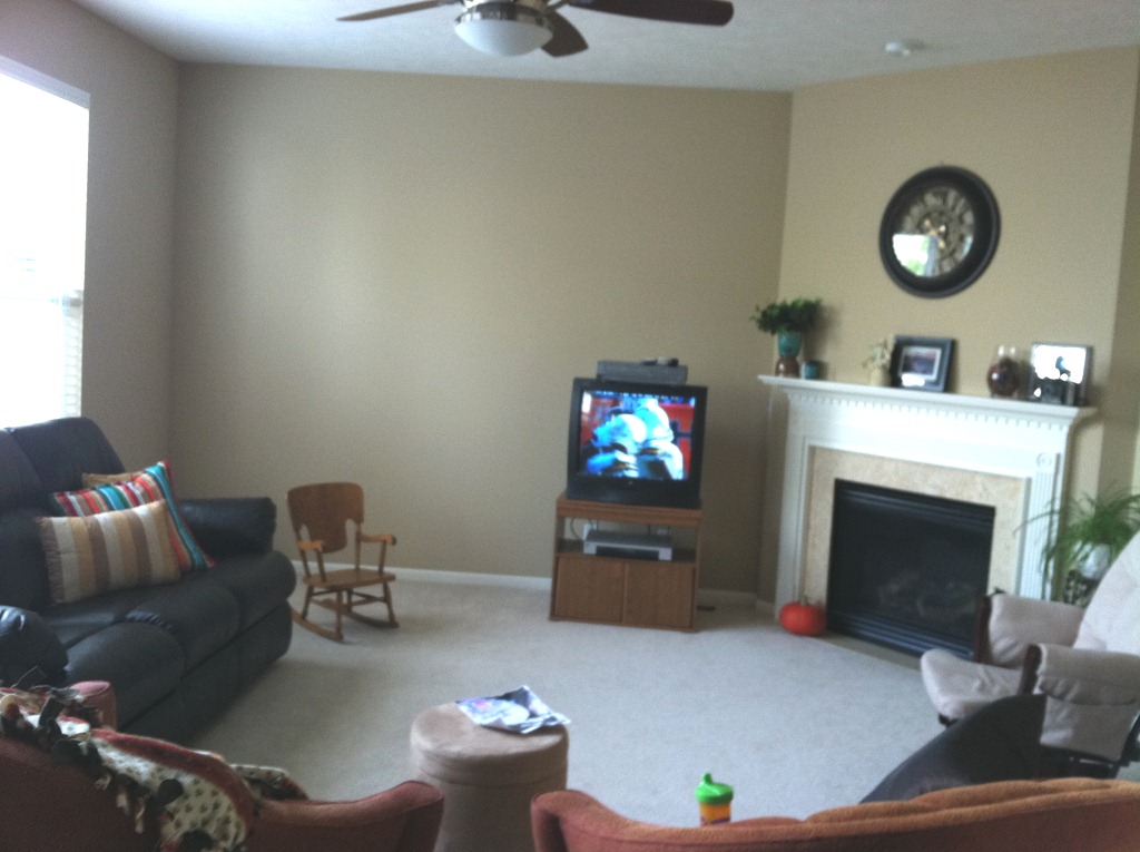 We’re getting settle in to the new house and it feels great. I’m not used to having so much room and sometimes I don’t know what to do with it. We have many shelves and cabinets sitting empty in the kitchen because I don’t know what to put in them. The front room feels ginormous, even with Isabella’s toys in it. Our bed room seems big and bare because we need more stuff to fill it. But, it’ll come. Slowly we will make each and every corner of this house our own. The family room and kitchen feel the most done. Here are a few pics: