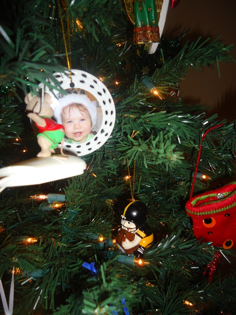 Some of the very most important ornaments go front and center – like the Isabella one from last year and the Steelers football guy!