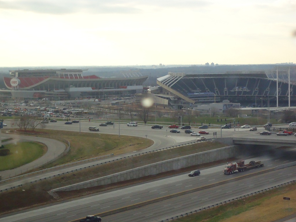 That’s Arrowhead football stadium on the left and the KC Royals baseball stadium on the right. All that separated us was the highway!