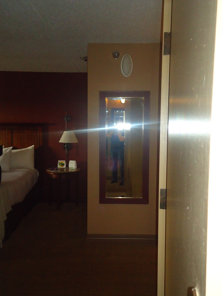 We had adjoining rooms. That’s my reflection in Chris and Courtney’s mirror, through the connecting door between our rooms. Dork with a capital D.
