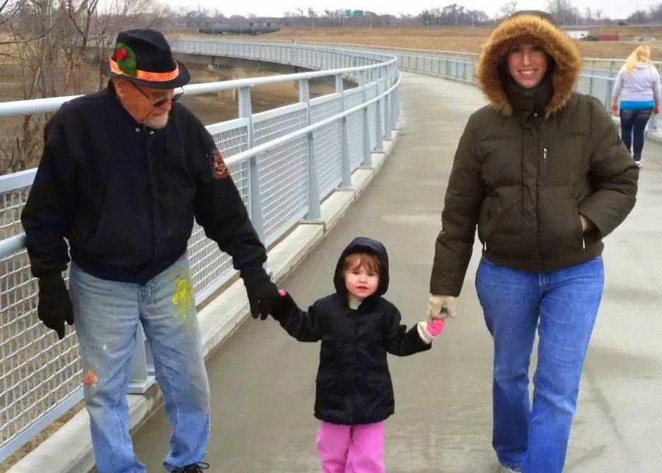 We went to the Bob Kerrey Pedestrian Bridge and walked all the way across and back (even though it was a cool rainy day).