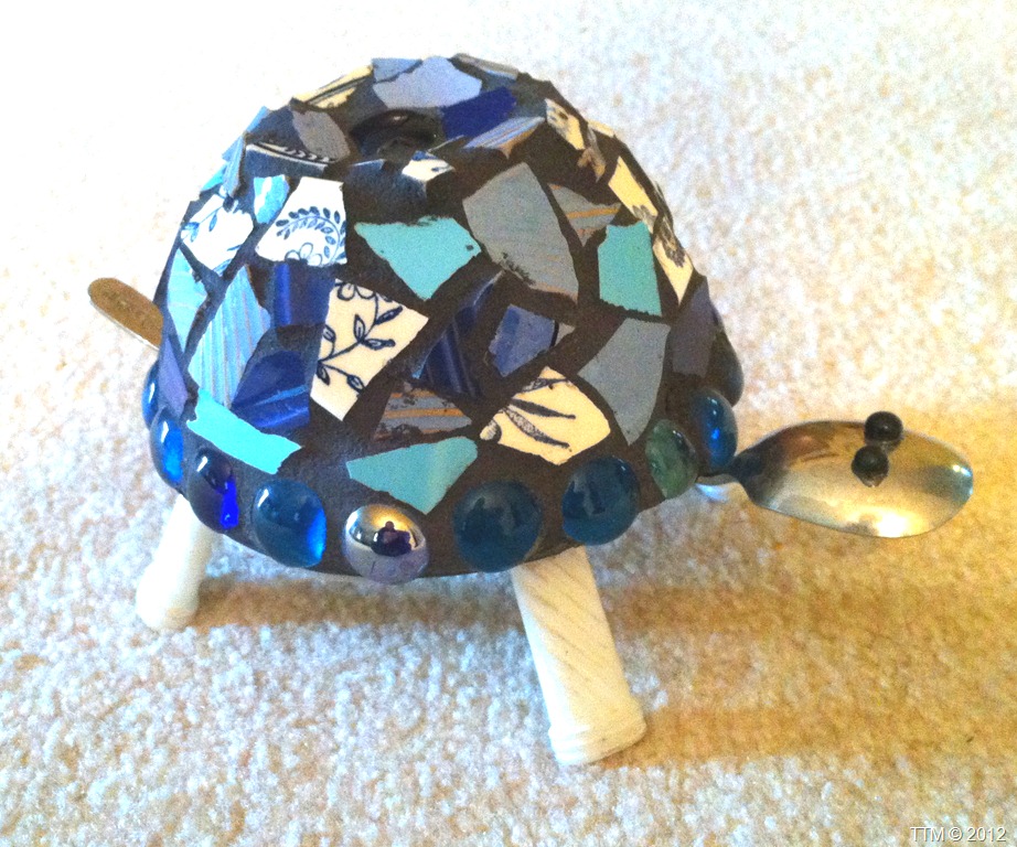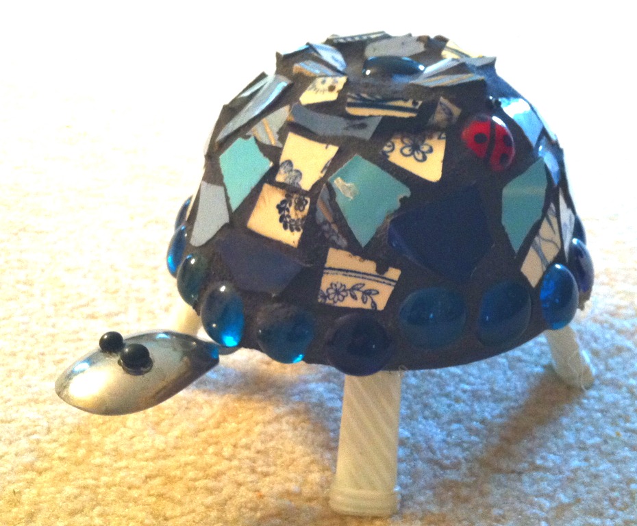 He’s a little mosaic turtle with spoons for the head, tail and legs. I thought he was super cute. There’s a little ladybug on the other side too!