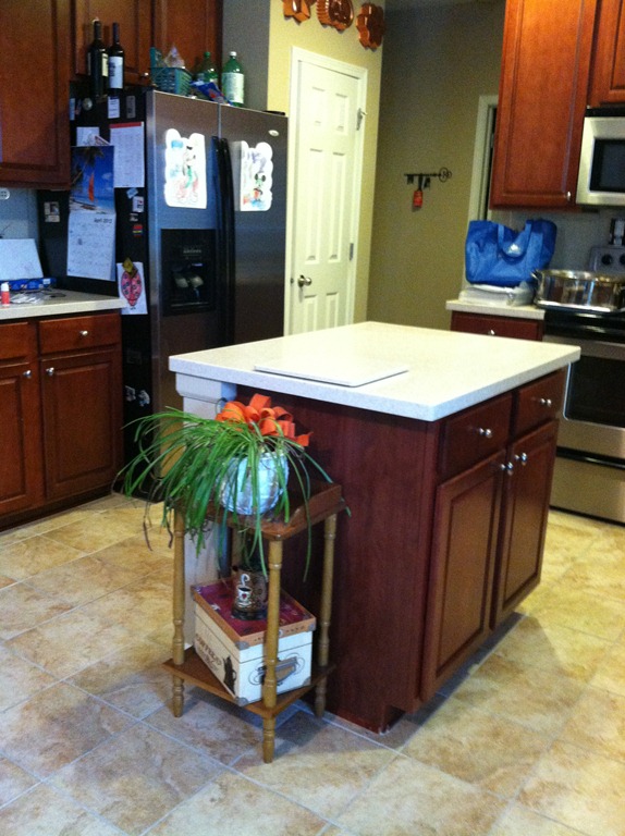 I tucked this at the end of our kitchen island. I originally had a plant on the island itself but it was taking up valuable space.