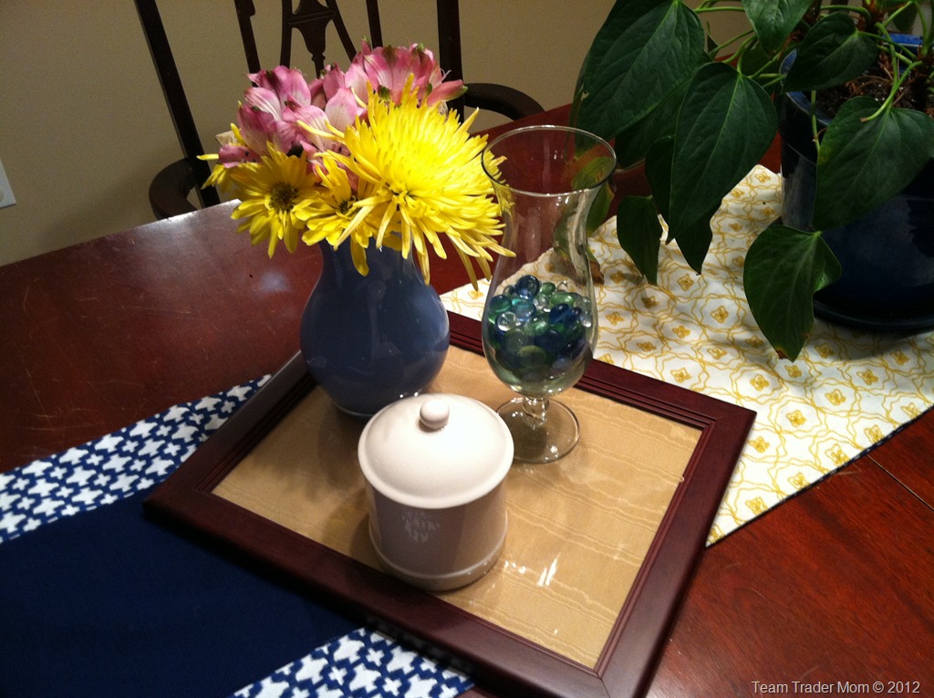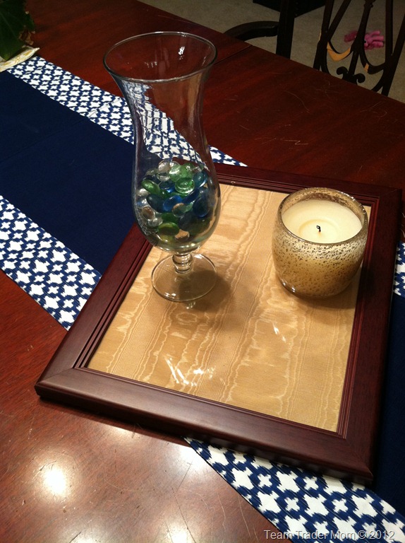 Let’s start with the dining room. The last time we saw this tray, that I made using leftover fabric, it looked like this: