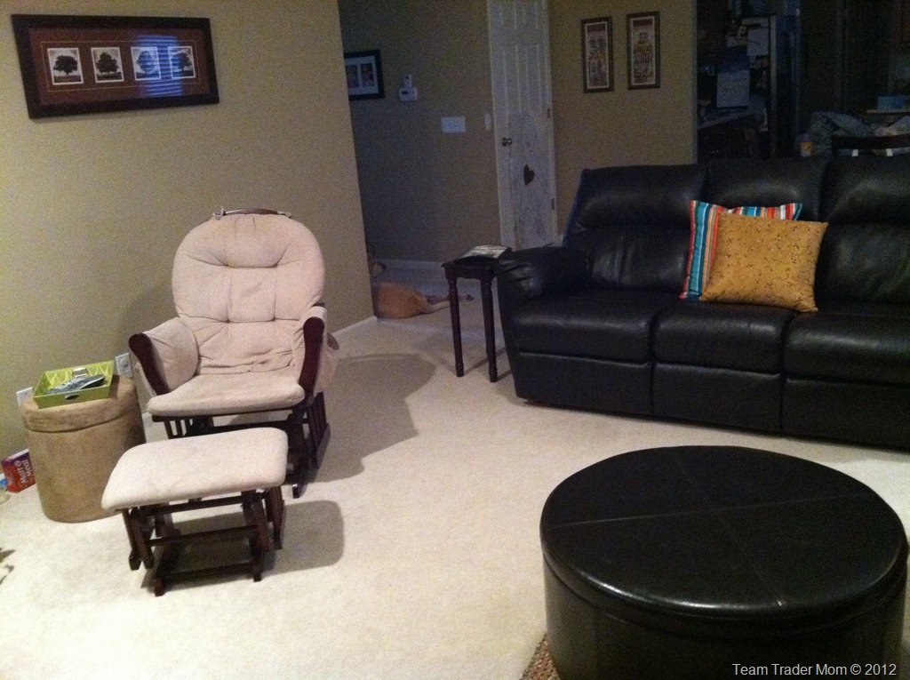 We bought that rocker when Isabella was born, to use for nursing at night and such. Since we’re way past all that, it got placed in here for extra seating. That’s pretty much where you’ll find CJ any night of the week that we’re home.