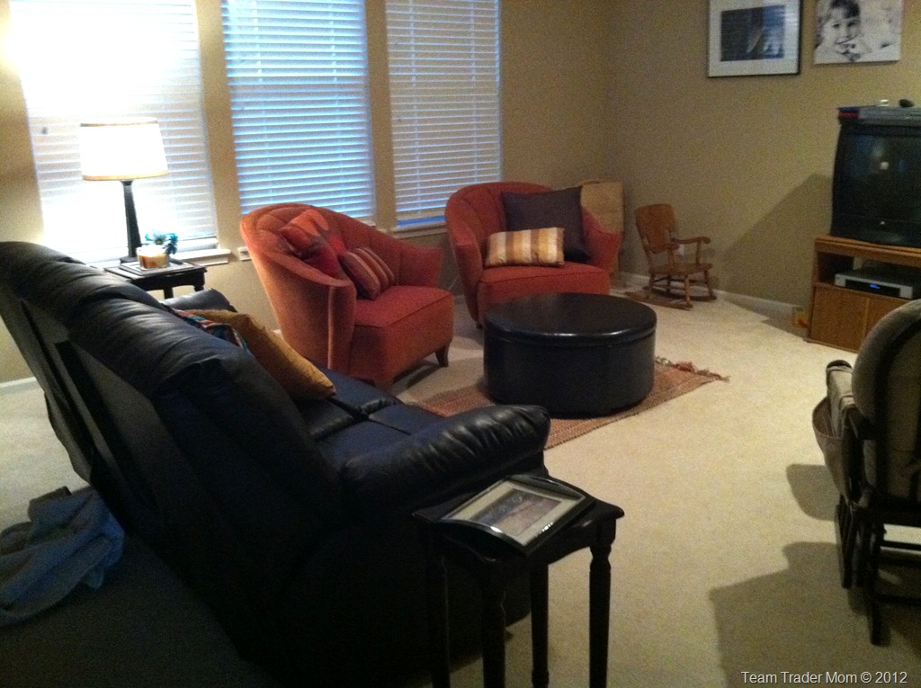 By the way, that back wall with the black and white pics is where we want to put built-in shelves. I think it would look awesome to have white built-ins with a space in the middle for a TV and picture. We will hopefully get going on that project soon…