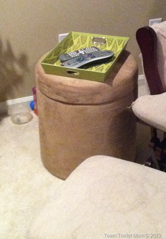That little ottoman was getting stained up from CJ putting his drinks on it so now he has a tray to put them in!
