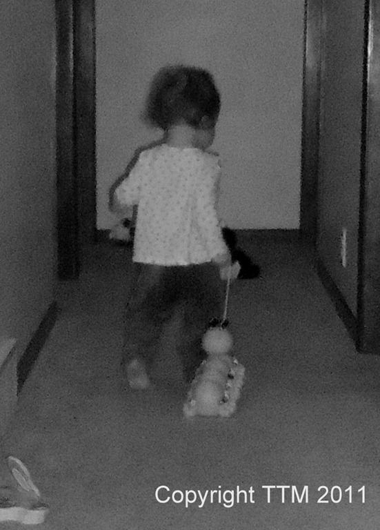 We spent a good 45 minutes there running around, doing all kinds of things. They had a rocking horse and rocking turtle thing there too but she said “No!” every time I tried to coax her in to riding on one. She wasn’t much interested in the sea-saw either (although she likes to yell out, “See-SAW! See-SAW!”).