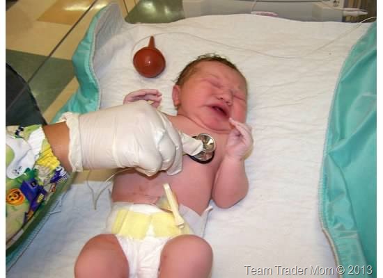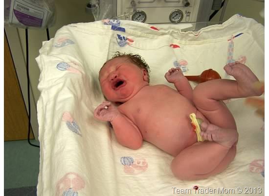 We got in to the room and they transferred me to the table and then strapped my arms down (which is normal procedure). The combination of the epidural and other anesthesia they gave me did something weird that caused my body to shake. Like I was uncontrollably cold and shivering non-stop. They said that happens sometimes and not to worry. They started the procedure and the next thing I knew the doctor was saying, “Oh what a beautiful baby!” And I heard what would soon become a familiar cry.