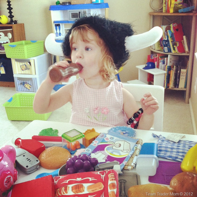 She was really enjoying pretending to drink that soda since she’s not allowed to have any in real life.