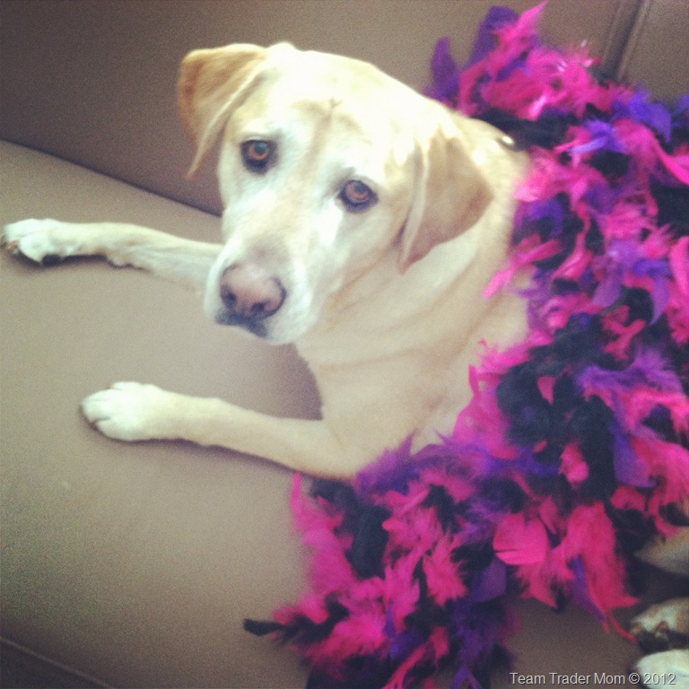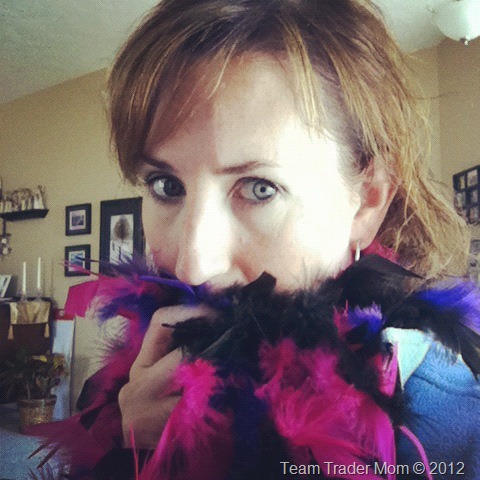 Adding a feather boa to go with, naturally (thanks to the Brit for the gift)!