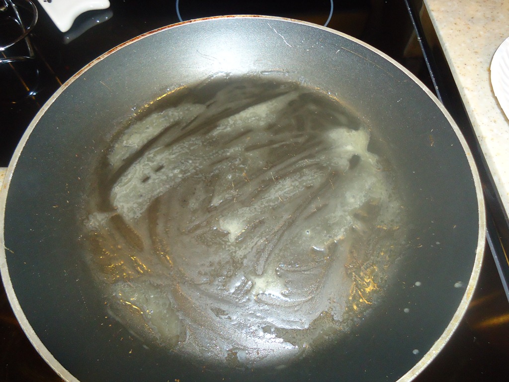Step 1. Throw 1 TBSP of butter in a frying pan and melt it.