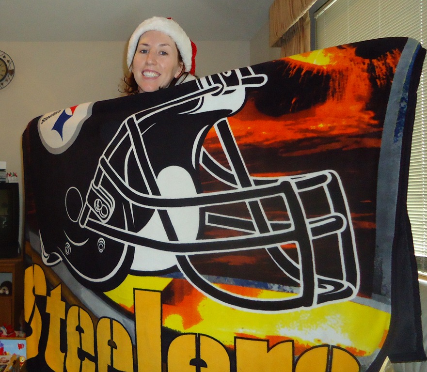 7. Best Christmas present you ever got – the most recent one that stands out in my head is my Steelers blanket from last year. I friggin’ love that thing! It’s so soft and cozy warm.