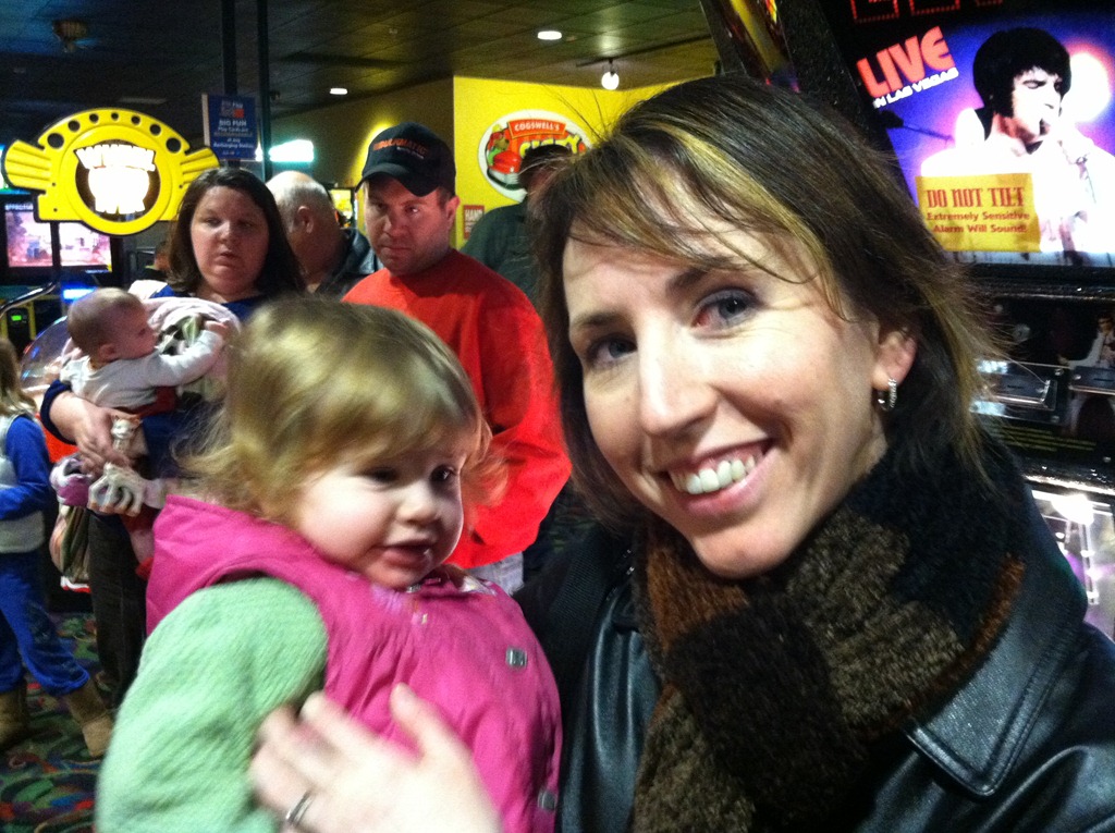 Finally it was time to go. We were all tired and overstimulated. So we counted up the tix – Isabella had earned 65 all by herself! So proud! The only toys they had there for 65 points were junky so we just left. It wasn’t worth waiting in the long line for (or fighting off the redneck looking couple behind me).