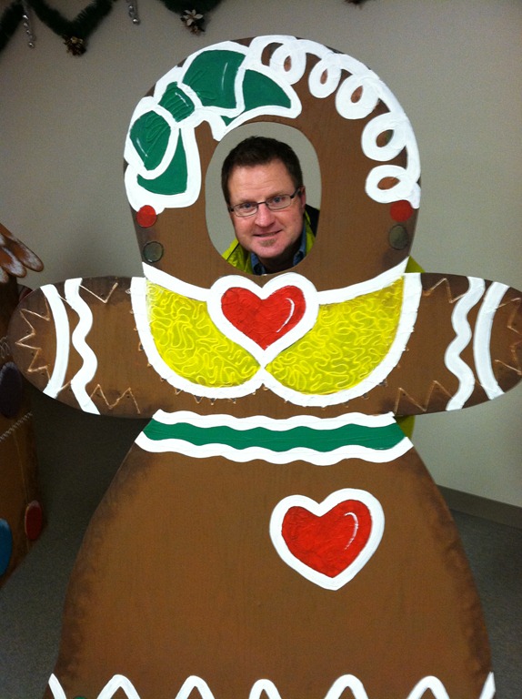Ha ha! I caught CJ in the gingerbread LADY cutout! He said he’s comfortable with his masculinity so it doesn’t bother him. To be fair, I posed in the man one.