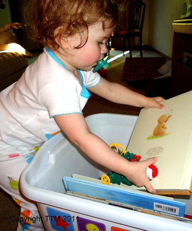Put away all of Isabella’s toys and only keep out those that can fit in to a rubbermaid container