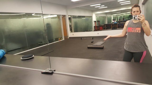 The gym I go to is at work. It’s an awesome perk we have and I feel very lucky that I have a convenient and cheap place to get a workout in. It’s also nice that they teach fitness classes in our gym, have personal trainers available, and have all the latest equipment. I’m spoiled and really have nothing to complain about.