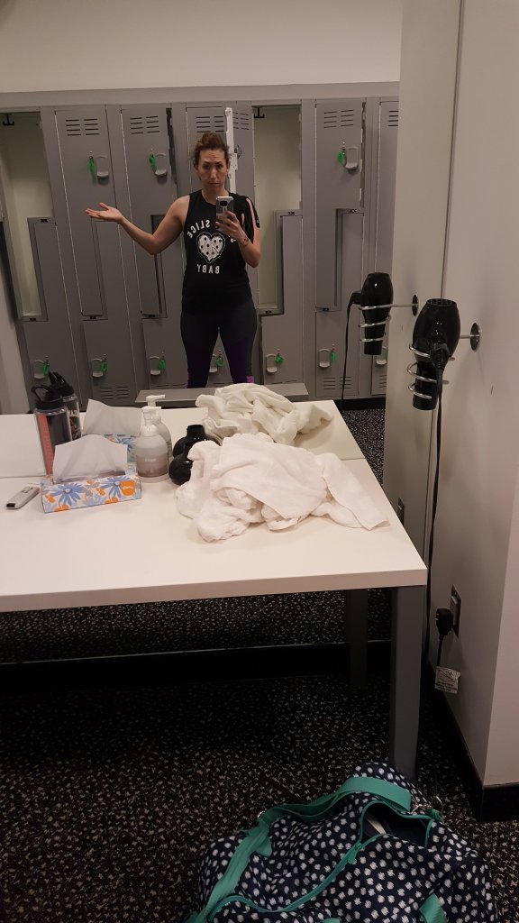Let’s take a minute to psychoanalyze this person. First of all I think Night Crawler and Sloppy Locker Room Lady (SLRL) are the same person. Looking at the size of the weights left out (15 lb. steel bell, 15 lb. dumbbells, a light barbell) Night Crawler is likely a woman (or a really weak dude….but I’m going with a chick). My guess is a single woman who has the time and availability to exercise at night. Probably a millennial who either still lives at home with her parents or has a really messy apartment. Also likely is that Night Crawler has never belonged to another gym because I doubt other gyms that are staffed 24×7 would put up with this nonsense.