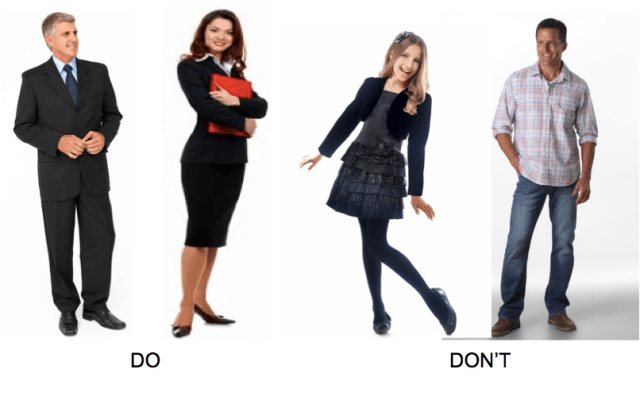 Dress appropriately. Regardless of the dress code for that company, YOU should look professional. I don’t care if the interviewer is wearing jeans and a t-shirt, you should dress up. Also, keep it conservative and neutral. You may have a killer hot pink shirt or sexy studded stilettos or fun suit coat with palm trees on it, but this isn’t the occasion to wear them. Save those for another time. If it’s something you’d wear to the club, don’t wear it to an interview.