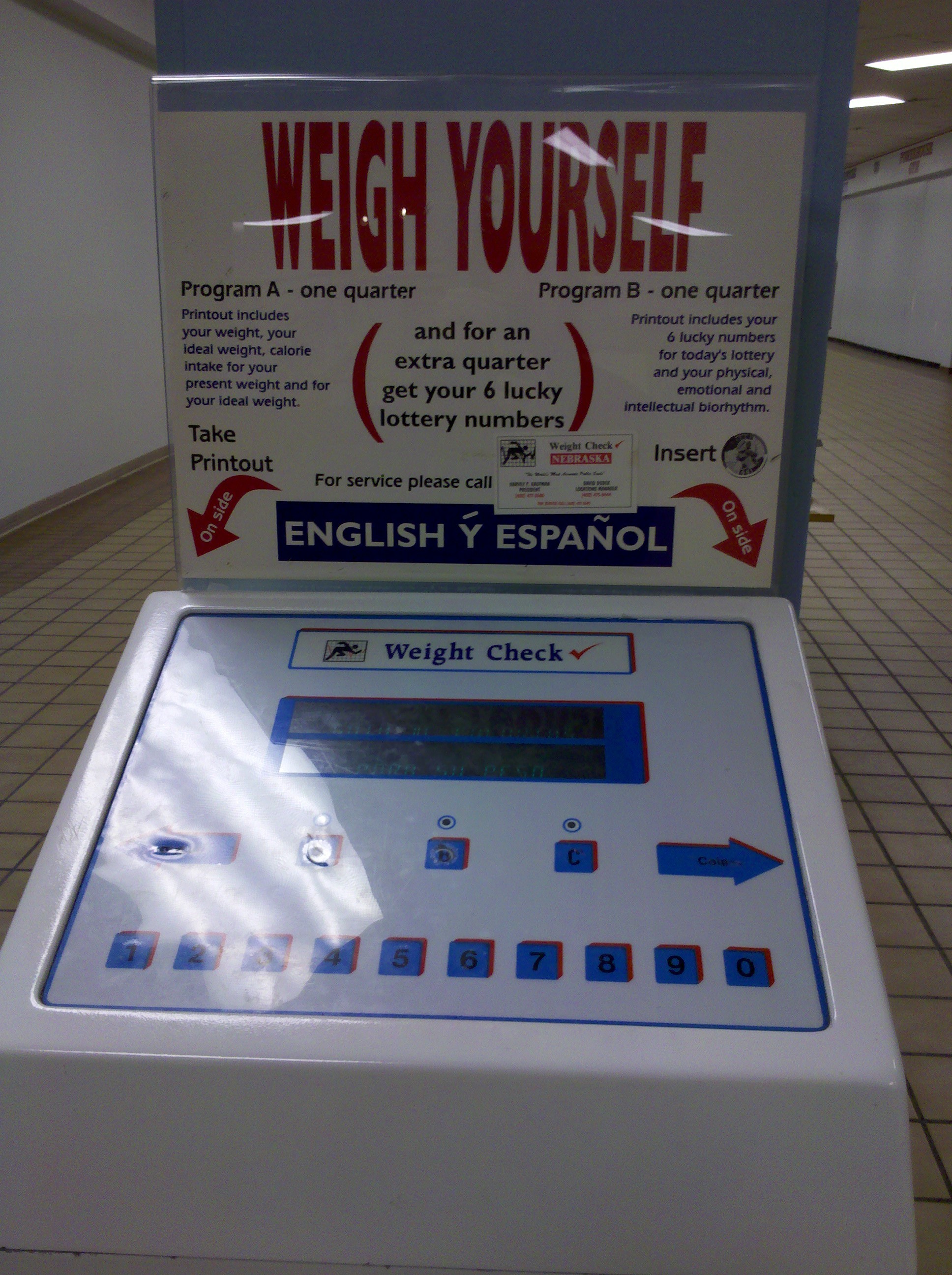 - Did I want to also get my lucky lotto numbers? (I said no because it would have cost me another quarter and I only had 2 – one for this scale and one for the other one. This would be a good time to shout out to Bob for loaning me the quarters! Thanks dude!)